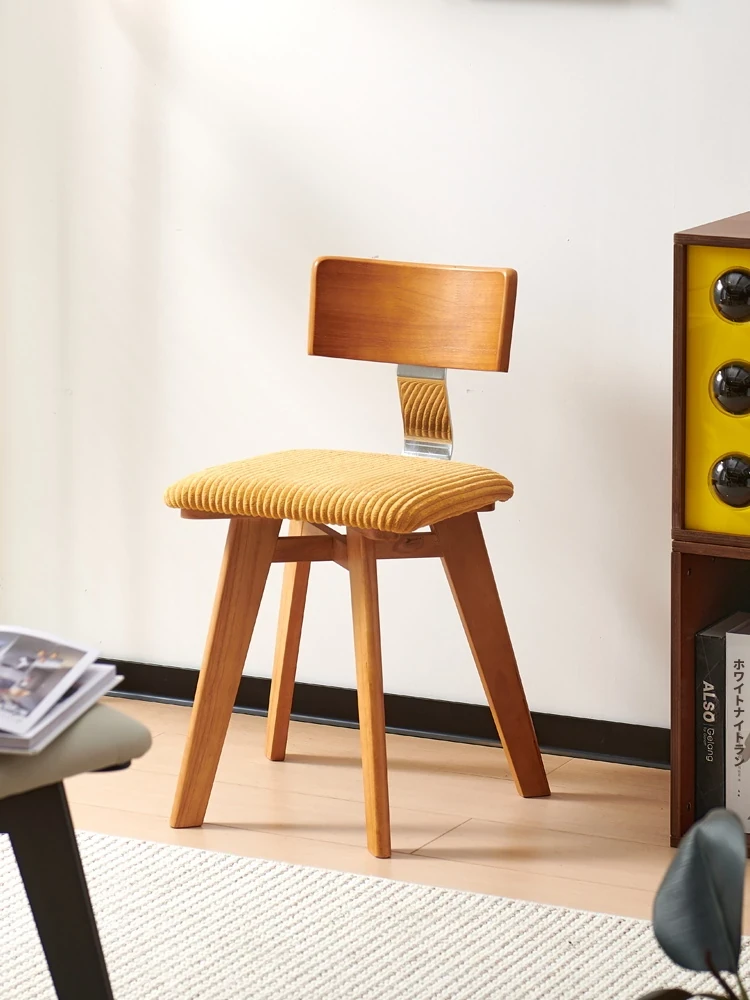 北欧モダンデザインの実木バックチェア - おしゃれなインテリアにもぴったり!小ぶりで使いやすい、家のダイニングやメイクアップに最適なデザイナー椅子。心地よい座り心地で、どんな空間にもフィットします。