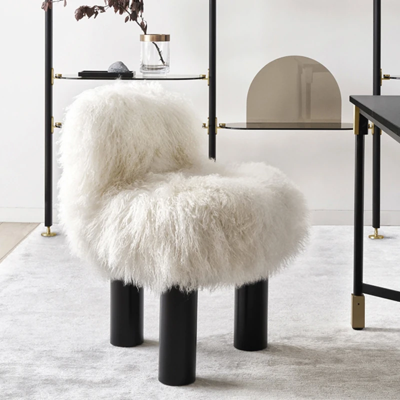 北欧モダンスタイルのロングパイルダイニングチェア|シンプルでラグジュアリーなファー椅子|ダイニング、リビング、寝室、メイクアップに最適|リラックス空間を演出するおしゃれな一脚