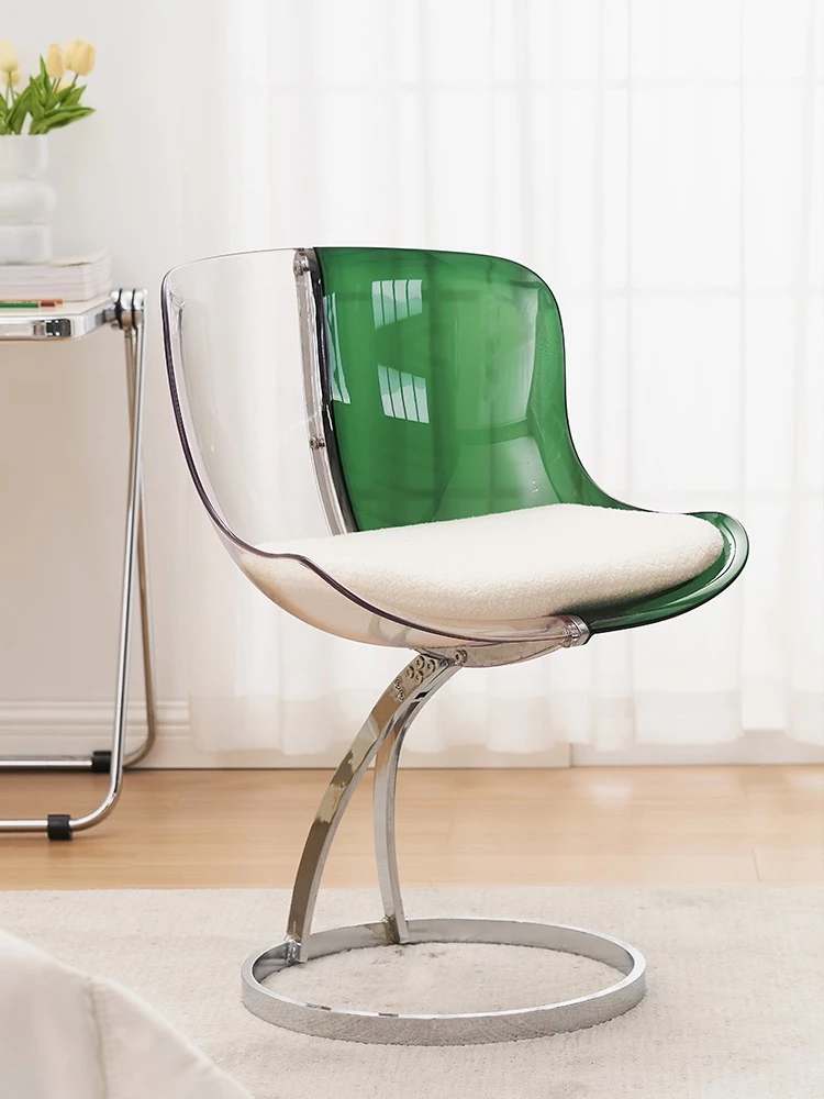 人気のクリアチェア!家庭用のシンプルな鉄製メイクアップチェア、インスタ映えするデザインで、カフェやティーショップにも最適。リラックスできる背もたれ付き、水晶のような美しさでお部屋を華やかに演出します。