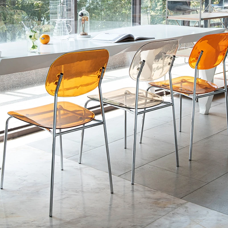 透明アクリル製のプラスチック椅子 - 北欧モダンのシンプルデザイン、背もたれ付きで快適!薄型で省スペース、家庭用やレストランに最適な厚手のダイニングチェア。