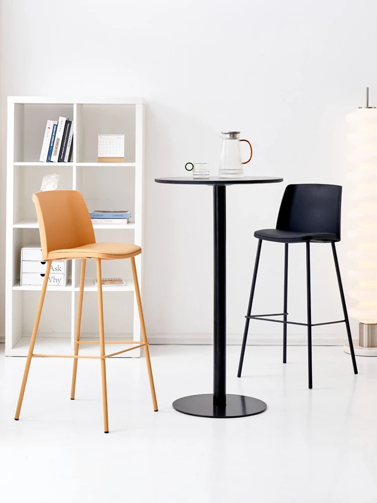 軽やかな北欧スタイルの現代的ミニマリストデザイン、プラスチック製の背もたれ付きハイチェア。小さなスペースにも最適な金属製のバー stools。カフェやティーショップにぴったり!