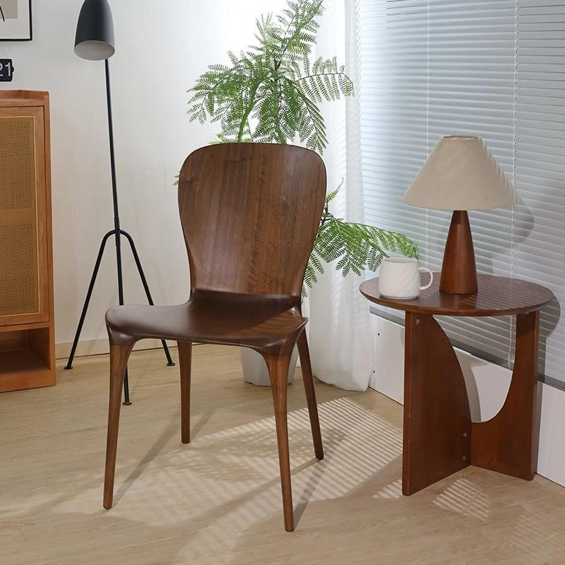 北欧スタイルの無垢材ダイニングチェア | モダンでシンプルなデザイン | 創造的なカーブ形状 | カフェやティーショップにぴったりのリラックスチェア | おしゃれで快適なひとときを提供します!