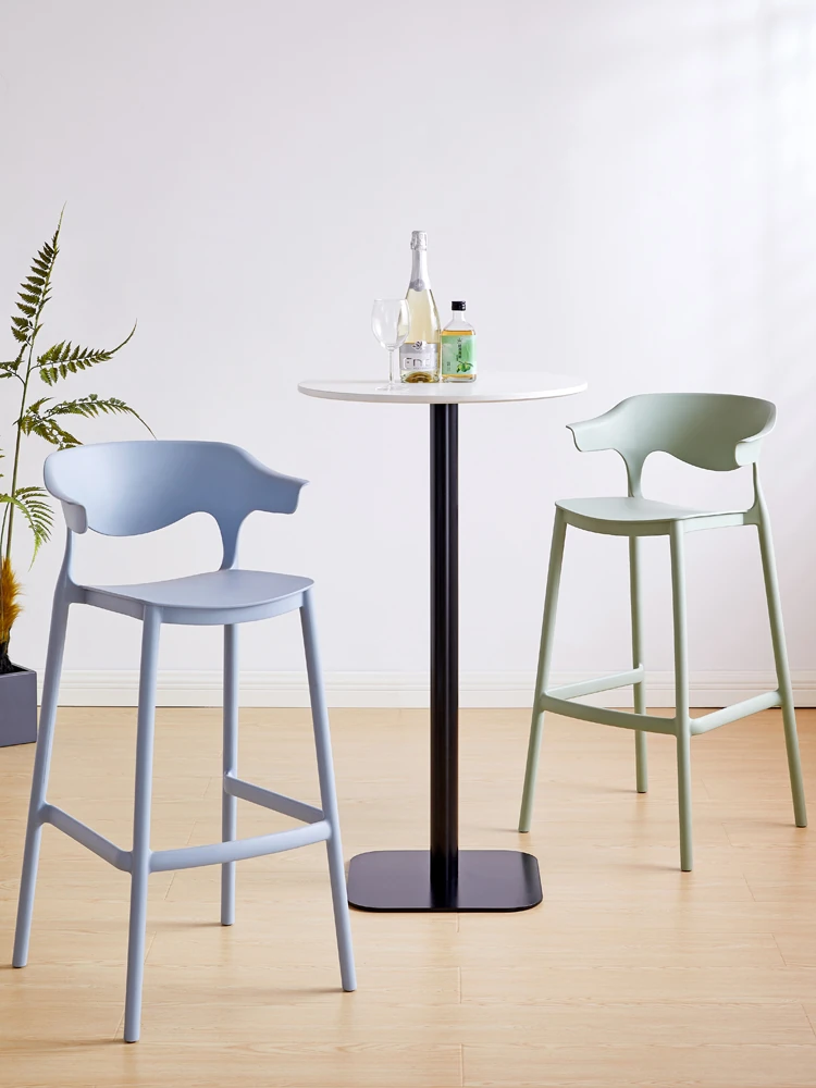 北欧スタイルの背もたれ付きプラスチックバースツール|家庭用アイデア満載のスタッカブルハイチェア|人気のカフェにぴったりなモダンミニマリストバーチェア