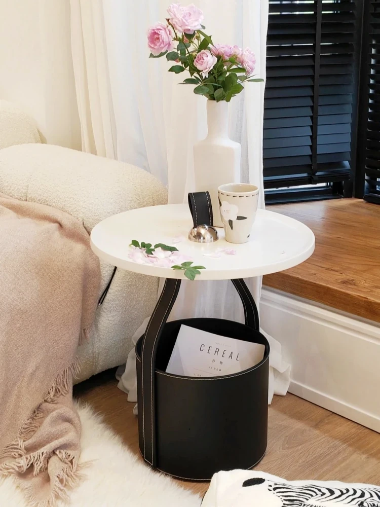 "Stylish Movable Saddle Leather Side Table - Perfect for Your Living Room! Modern Art-Inspired Design, Hand-Carried Convenience, Ideal for Trendy Spaces and Chic Gatherings."