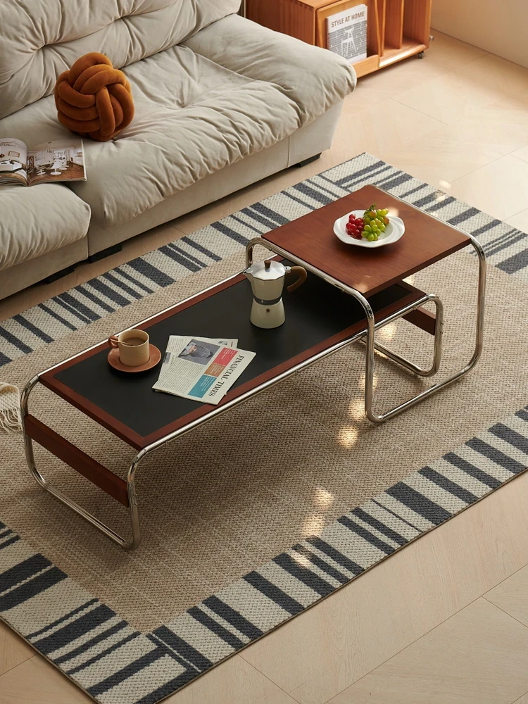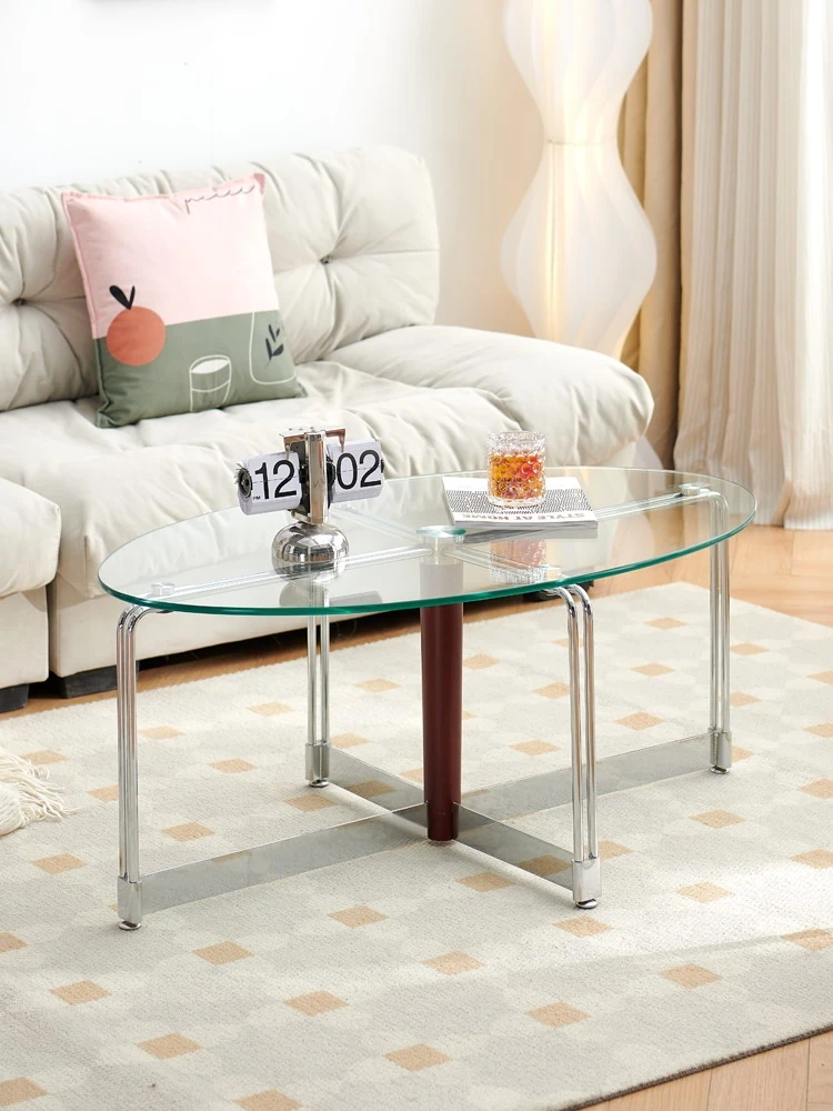 Nordic Style Vintage Glass Coffee Table - Designer Bauhaus Minimalist Living Room Side Table, Chic and Functional Low Table for Your Home