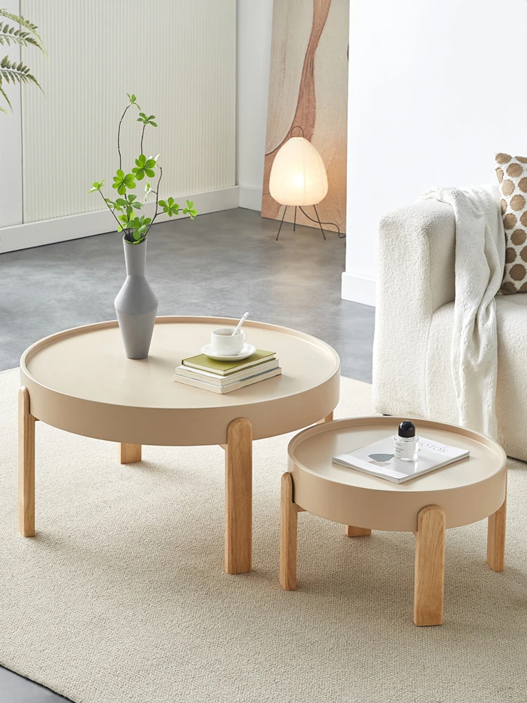 Modern Japanese Minimalist Tea Table – Elegant Wooden Cream Finish, Round Design for a Chic Living Room, Perfect for Wabi-Sabi Aesthetic, Versatile Sizes and Combinations in Sleek Lacquered Finish.