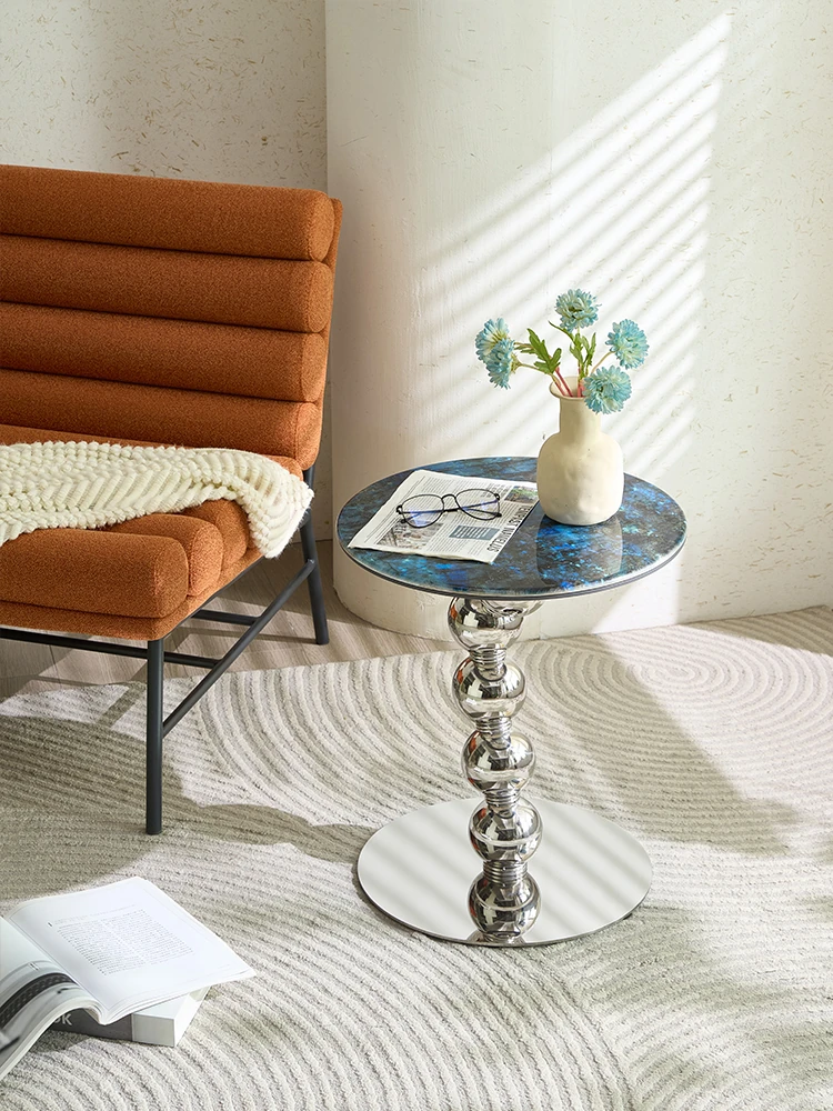 Minimalist Italian Round Luxury Stone Sofa Side Table - Contemporary Designer Style with Stainless Steel & Microcrystalline Stone, Perfect for Modern Living Spaces.