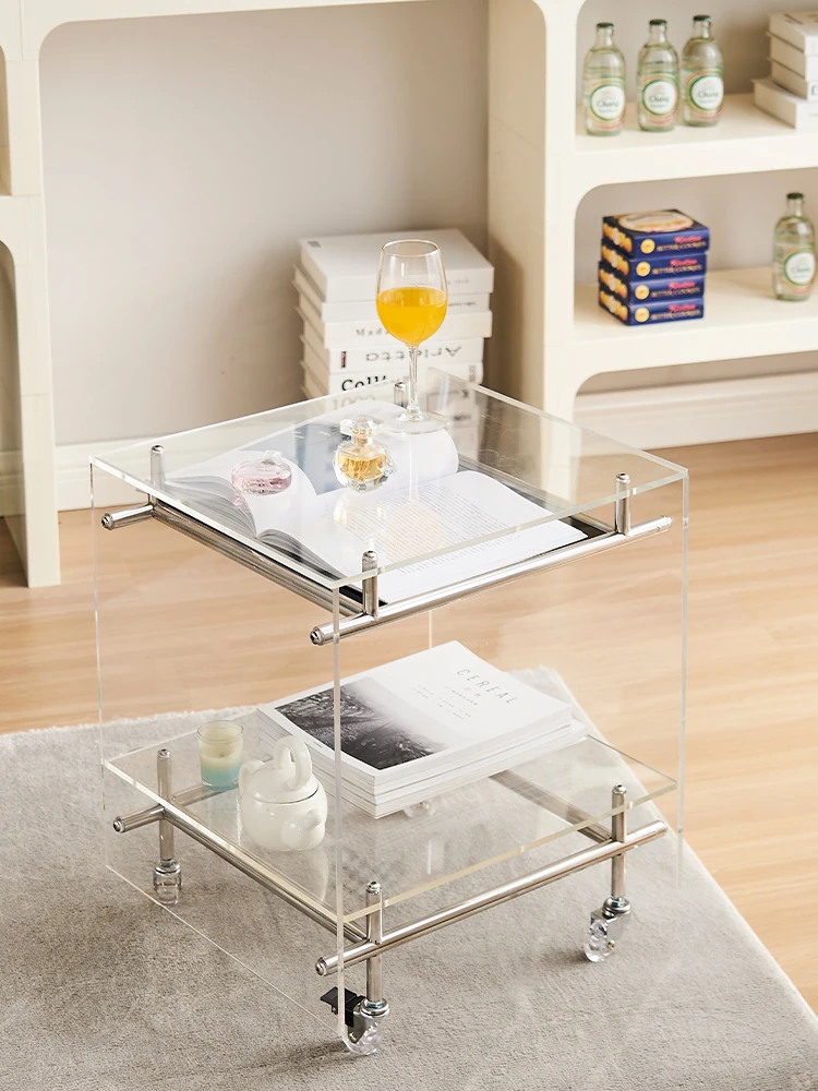 Stylish Vintage Acrylic Rolling Cart - Perfect as a Sofa Side Table or Nightstand, Instagram-Worthy Design, Mobile Stainless Steel Storage Solution for Your Living Room.