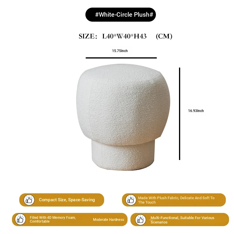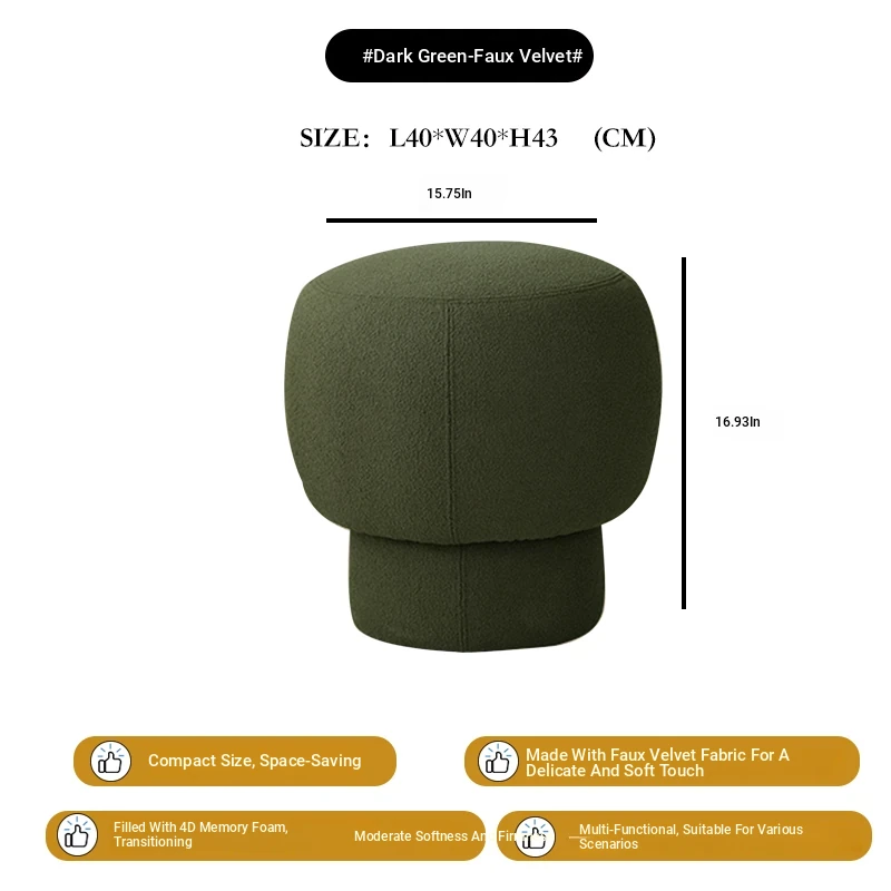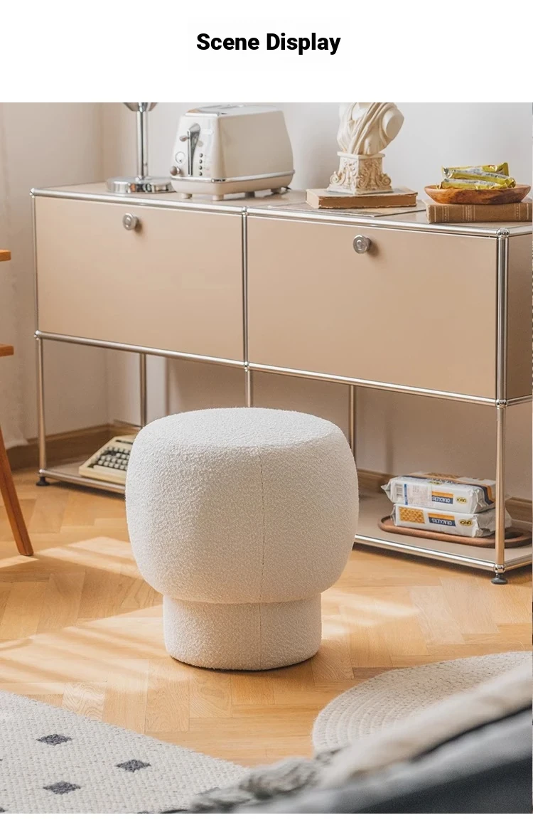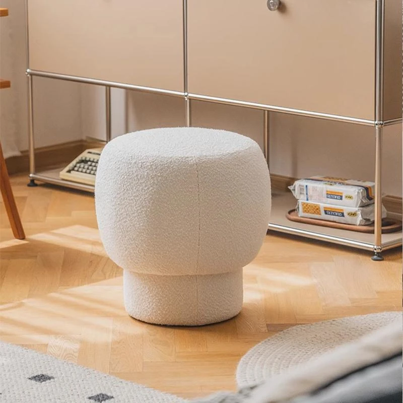 Nordic Minimalist Shoe Bench - Stylish Mushroom-Inspired Makeup Stool for Living Room, Trendy Velvet Round Ottoman, Perfect for Home Décor and Vanity Use