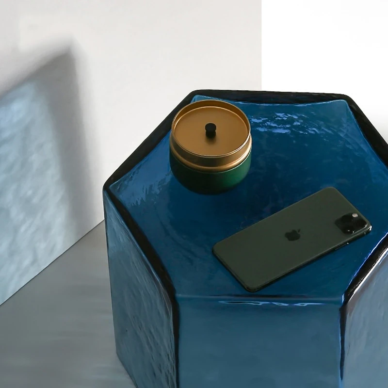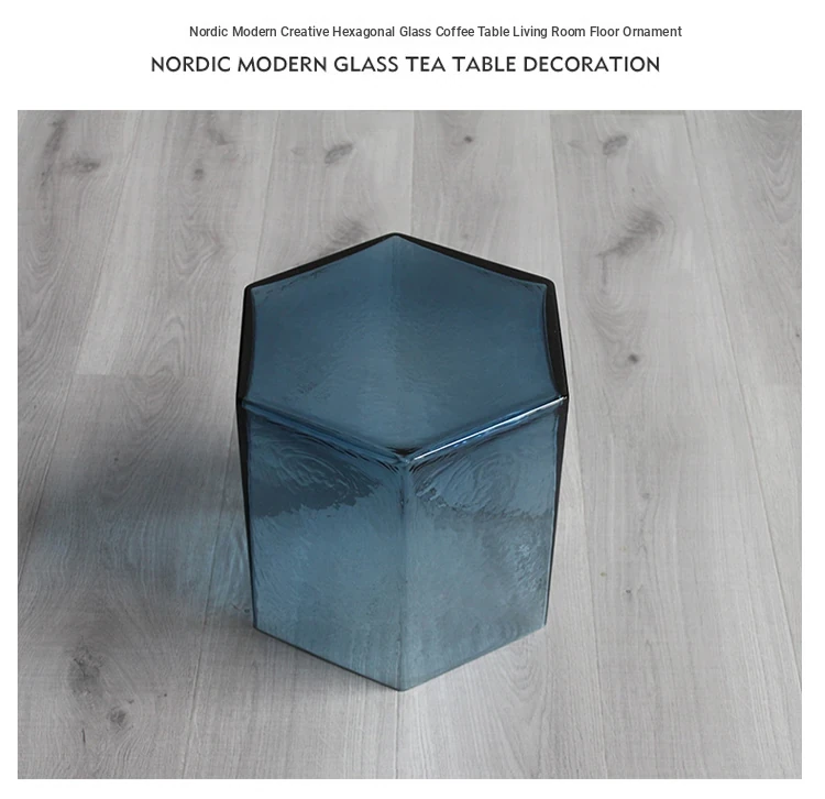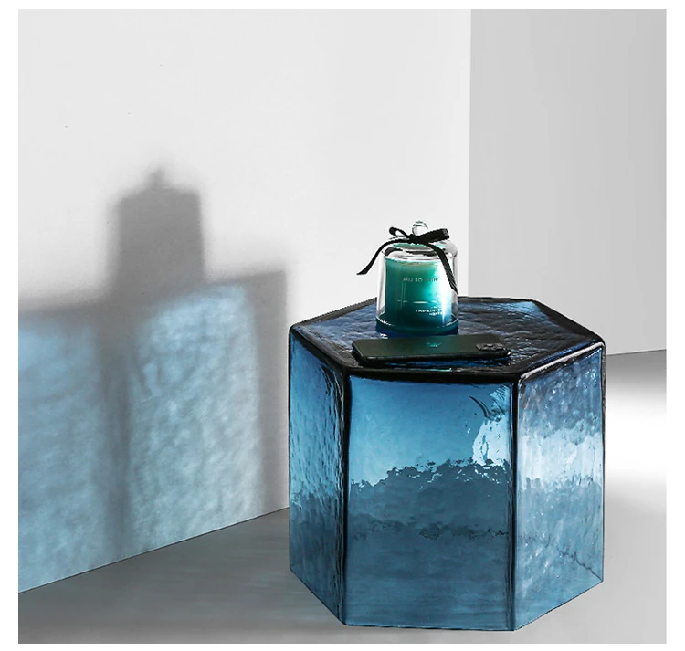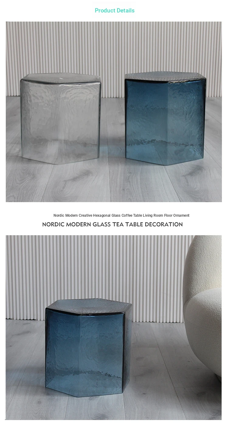 リビングルームにぴったり!カラフルでクリエイティブなデザインのガラスサイドテーブル、シンプルな六角形のラグジュアリーな組み合わせ。おしゃれな角テーブルで、くつろぎの空間を演出します。