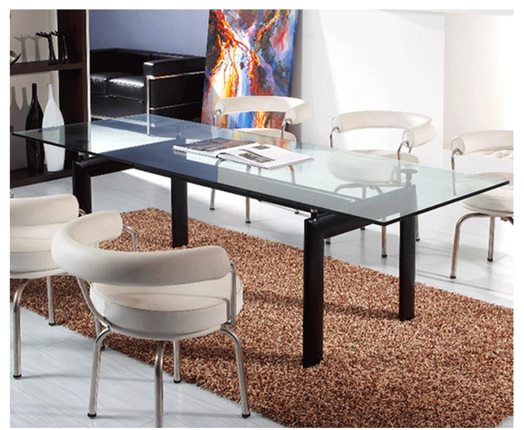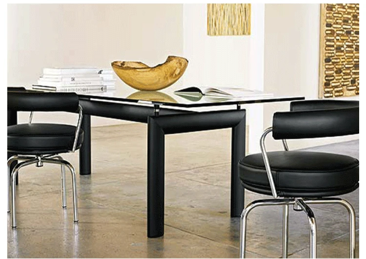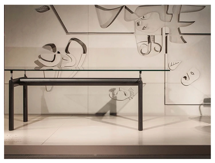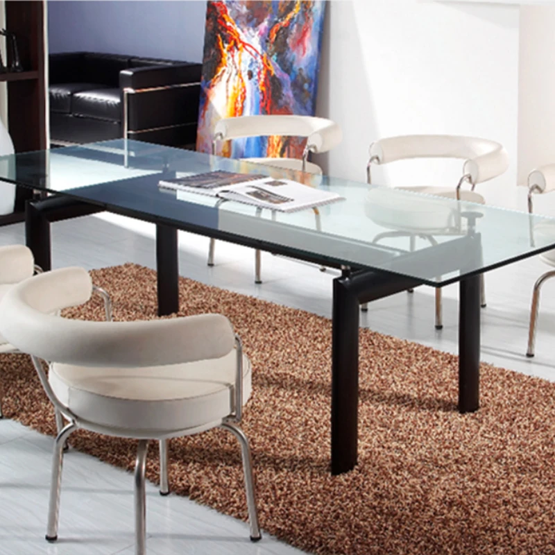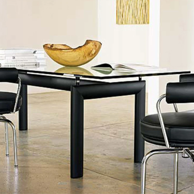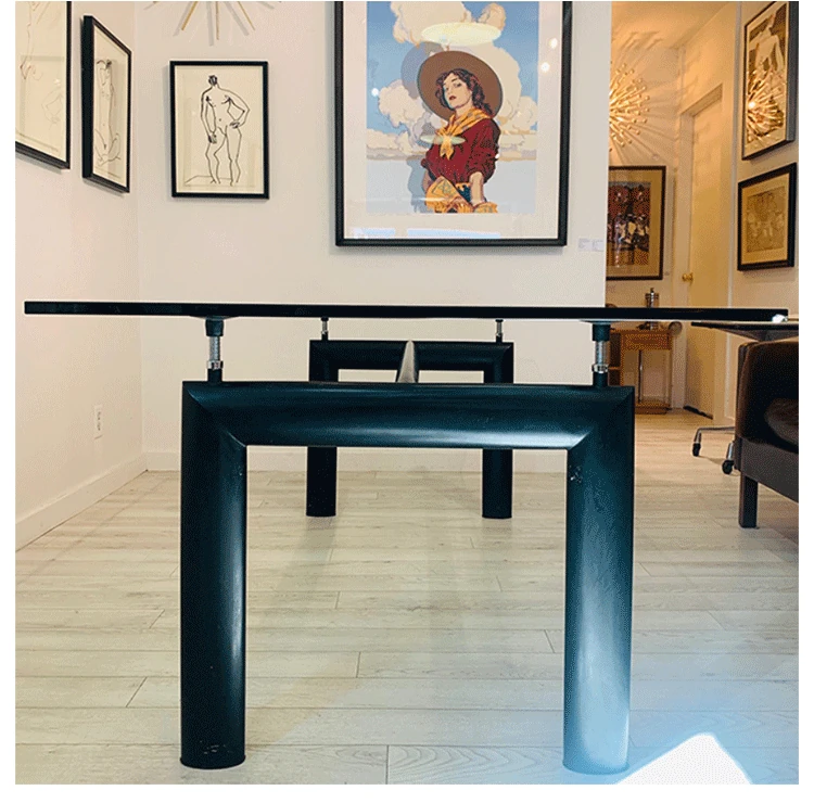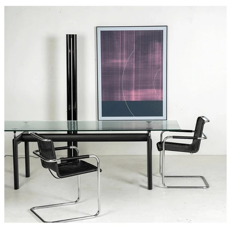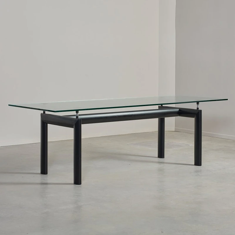 中古バウハウスLC6デザインテーブル|強化ガラスと金属を使用したスタイリッシュなオフィステーブル|クリエイティブなワークスペースに最適な長テーブル